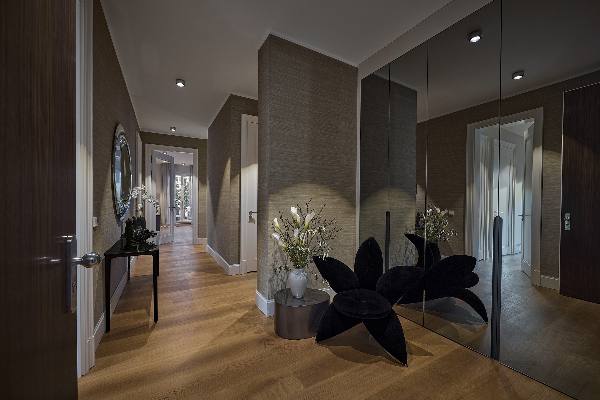 Around 242 m², six rooms, including three bedrooms, each with its own bathroom and a 76 m² roof terrace - even the dry facts inspire the imagination of what life in PENTHOUSE N°1 could feel like. At 2.60 metres, the exceptionally high and correspondingly heavy solid wood doors were developed in a manufactory and made to measure. They are fitted with particularly quiet locks and invisible hinges. The door handles fit perfectly in the hand and are made of highly polished stainless steel in the Bauhaus style. The highest aesthetic, technological and material standards are applied to every detail, however small and often invisible, with just one aim: to create a truly unique masterpiece for the home.