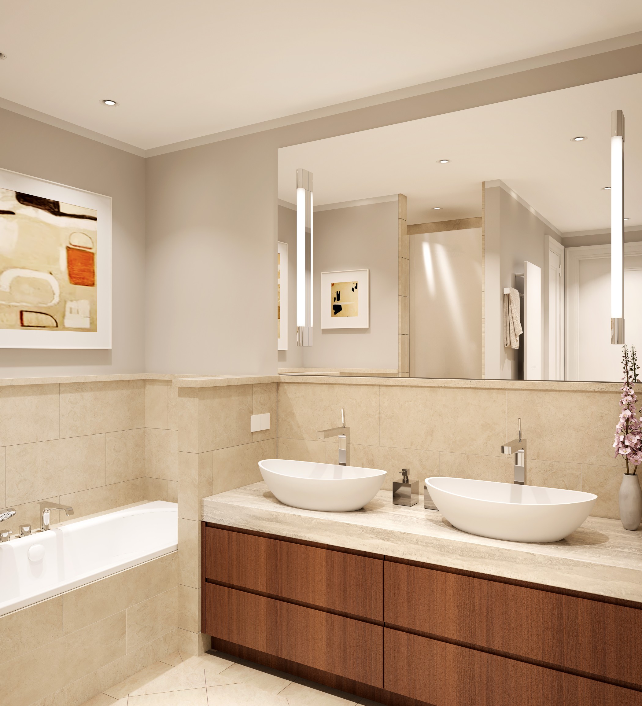 All information, illustrations and calculations have been compiled with the utmost care. Nevertheless, no guarantee can be given for their completeness and accuracy. The graphical representations correspond to the current planning status. We expressly reserve the right to make individual changes. Only the concluded contracts and their annexes are binding for the type and scope of execution and delivery. The furnishings and room layout shown in the plans and drawings are only a suggestion and are not part of the contract. The three-dimensional visualisations are free artistic representations that do not necessarily reflect the future reality.