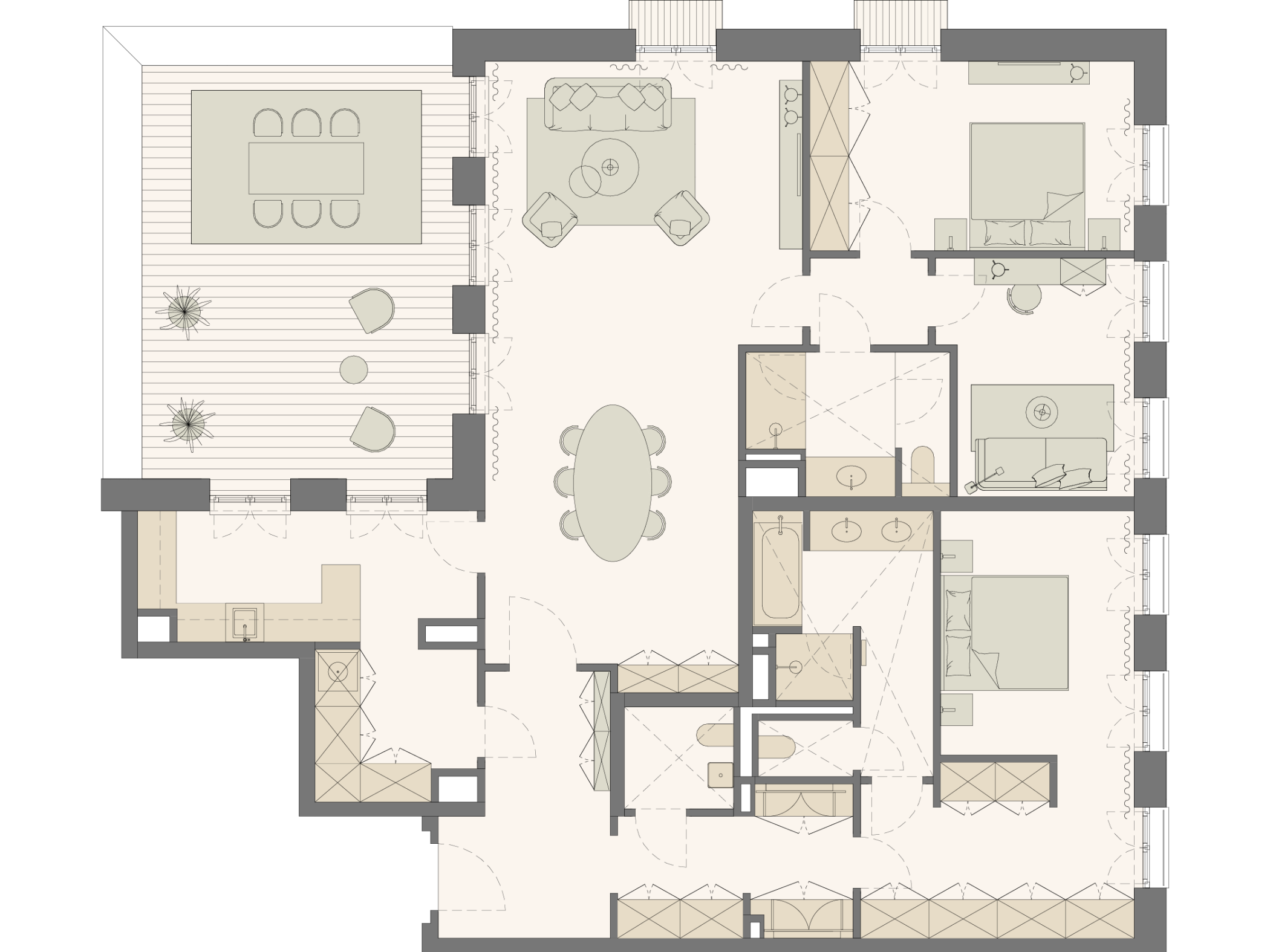 Spacious terrace, French balconies and floor-to-ceiling windows